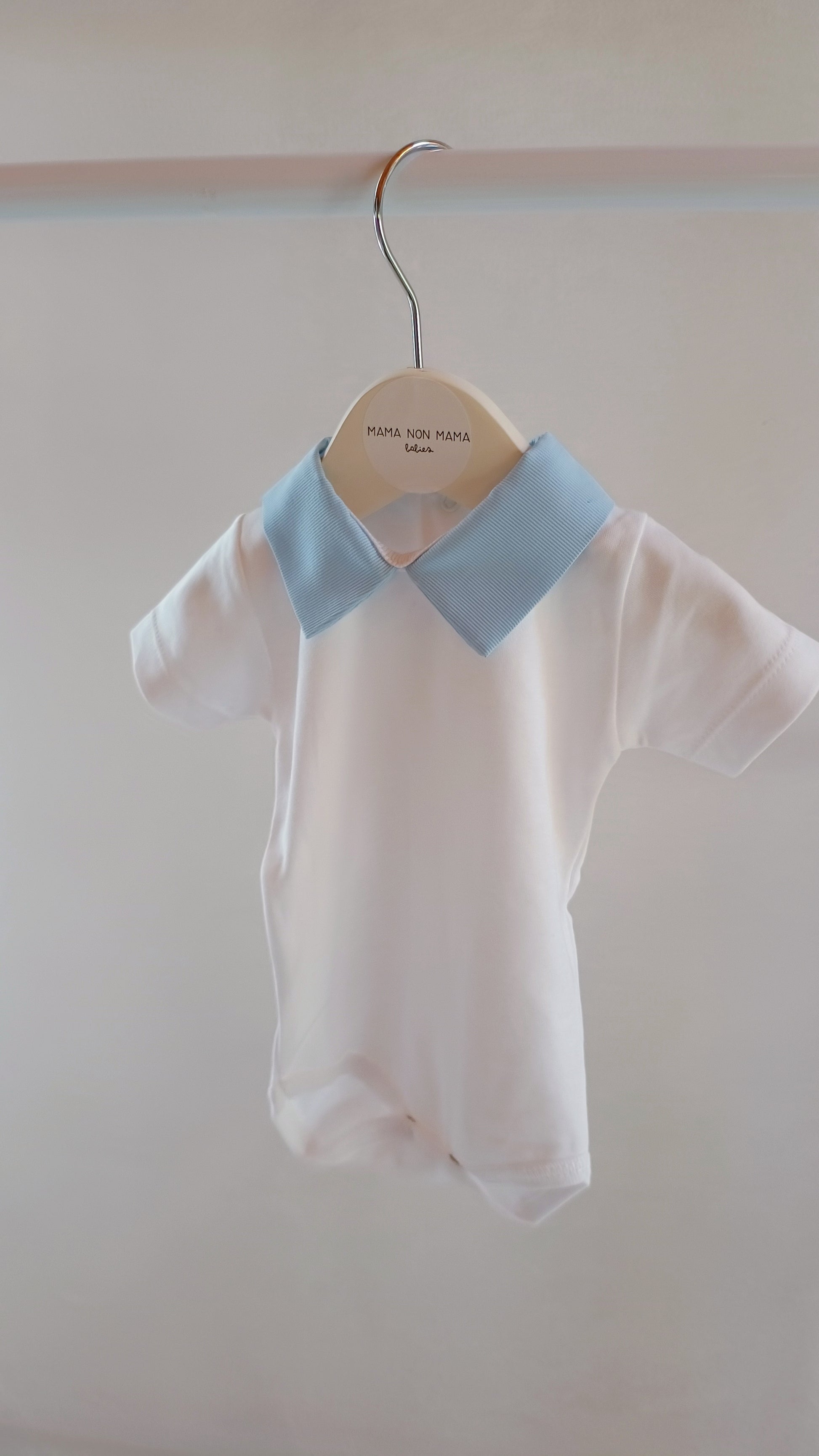 Questo body è un capo classico per i neonati arricchito da uno splendido colletto che lo rende chic e pratico nello stesso tempo.