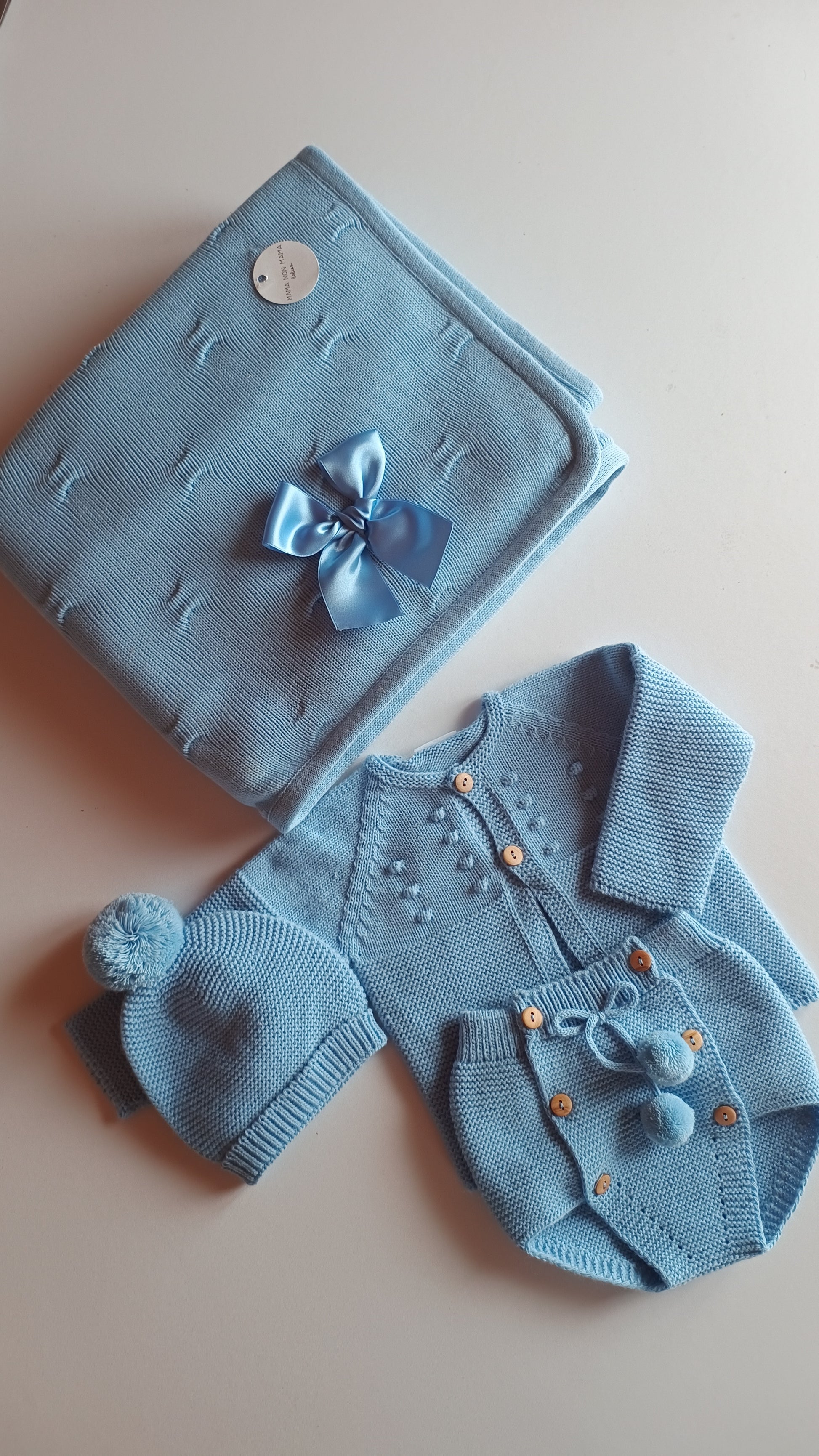 BOX set 4 pezzi • completo PONPON+coperta blu - autunno/inverno