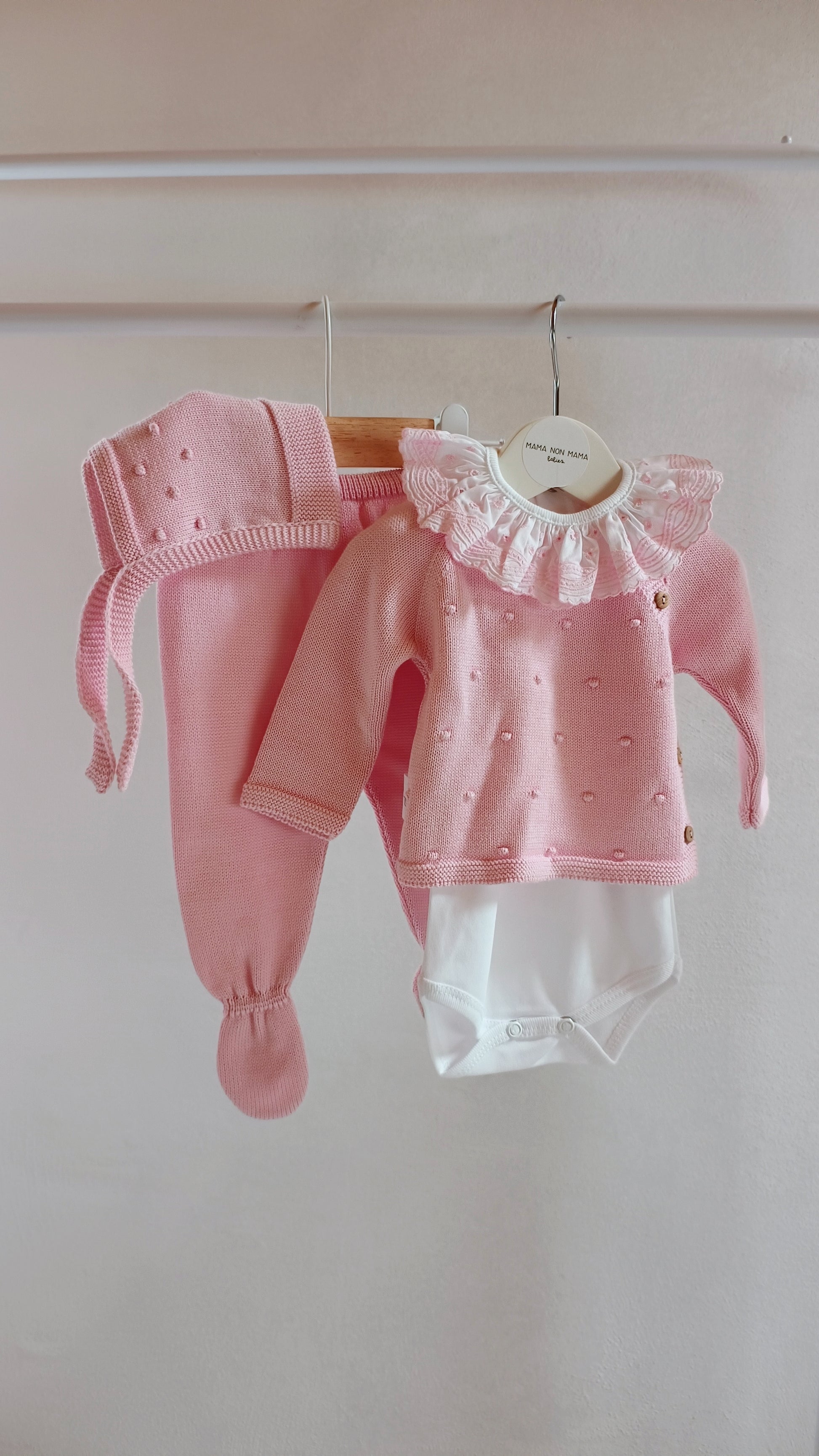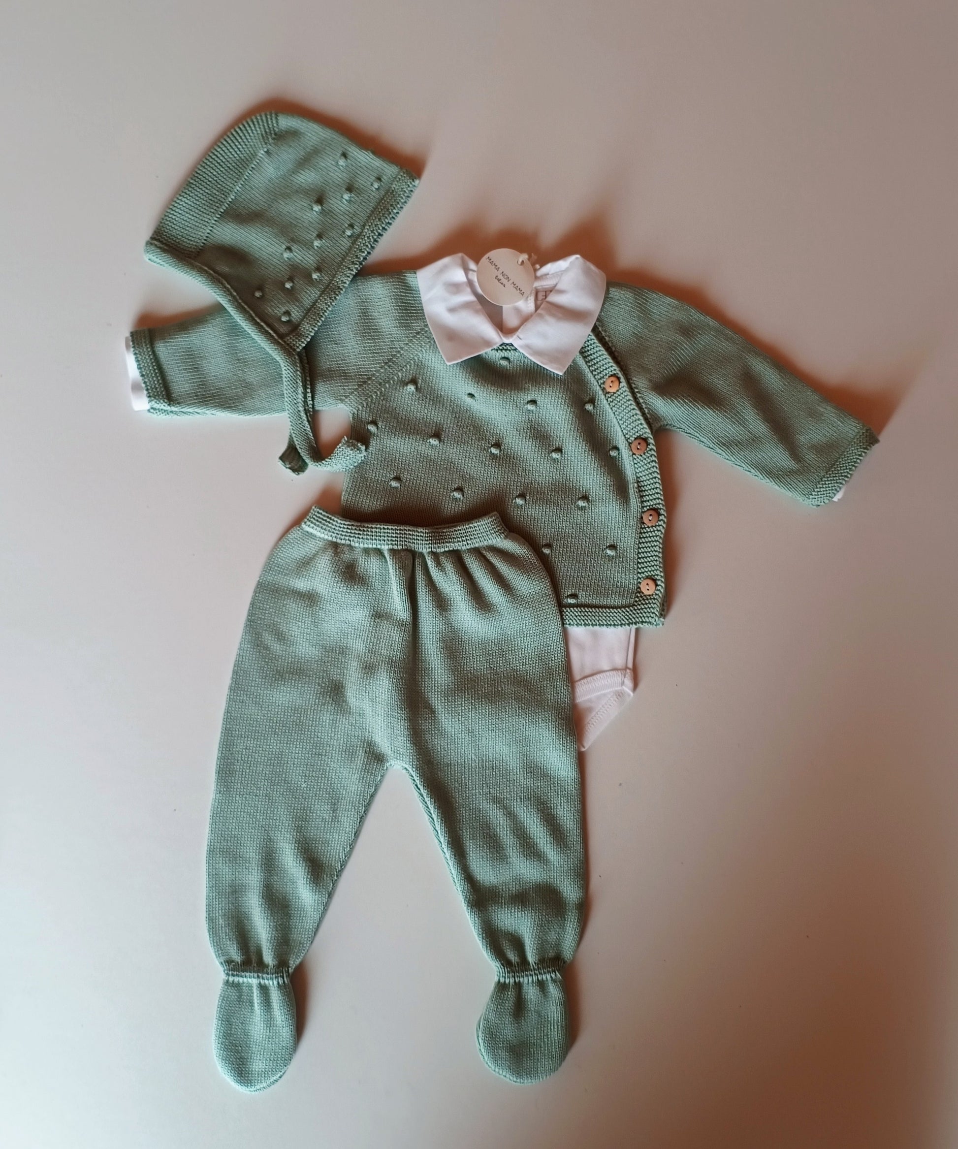 Questo adorabile set di 3 pezzi per neonato è perfetto per i primi mesi di vita del tuo piccolo. Realizzato in cotone 100%, offre la massima morbidezza e traspirabilità per la pelle delicata del bambino. La trama a pois in rilievo aggiunge un tocco di stile e originalità.