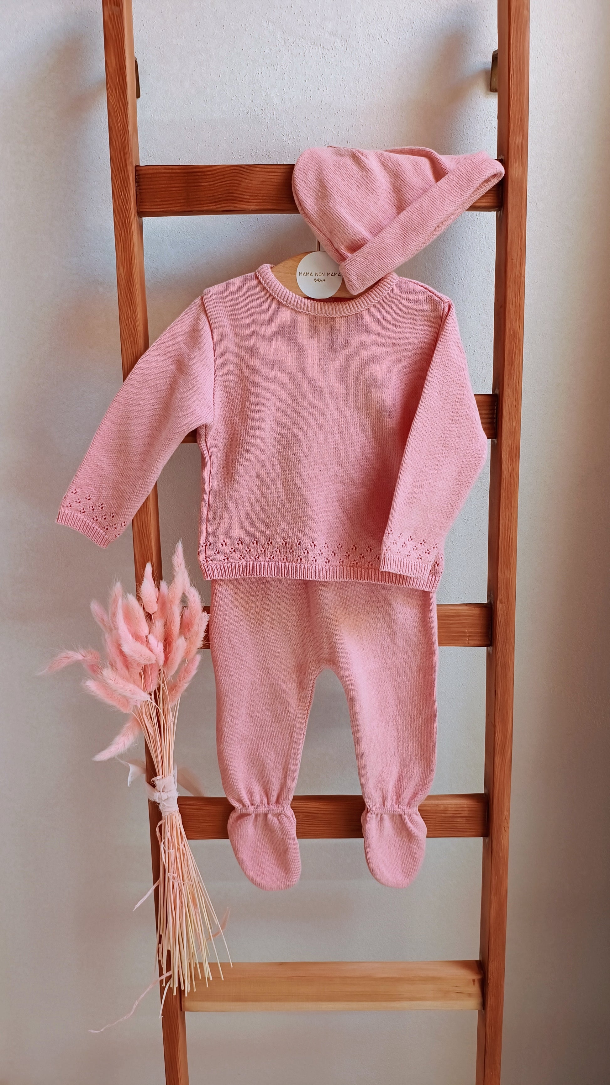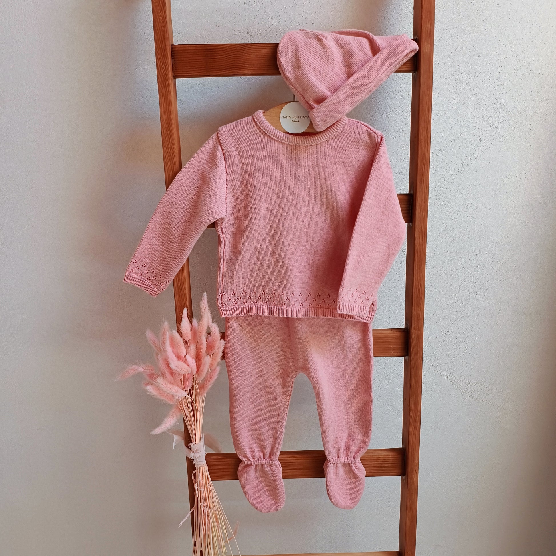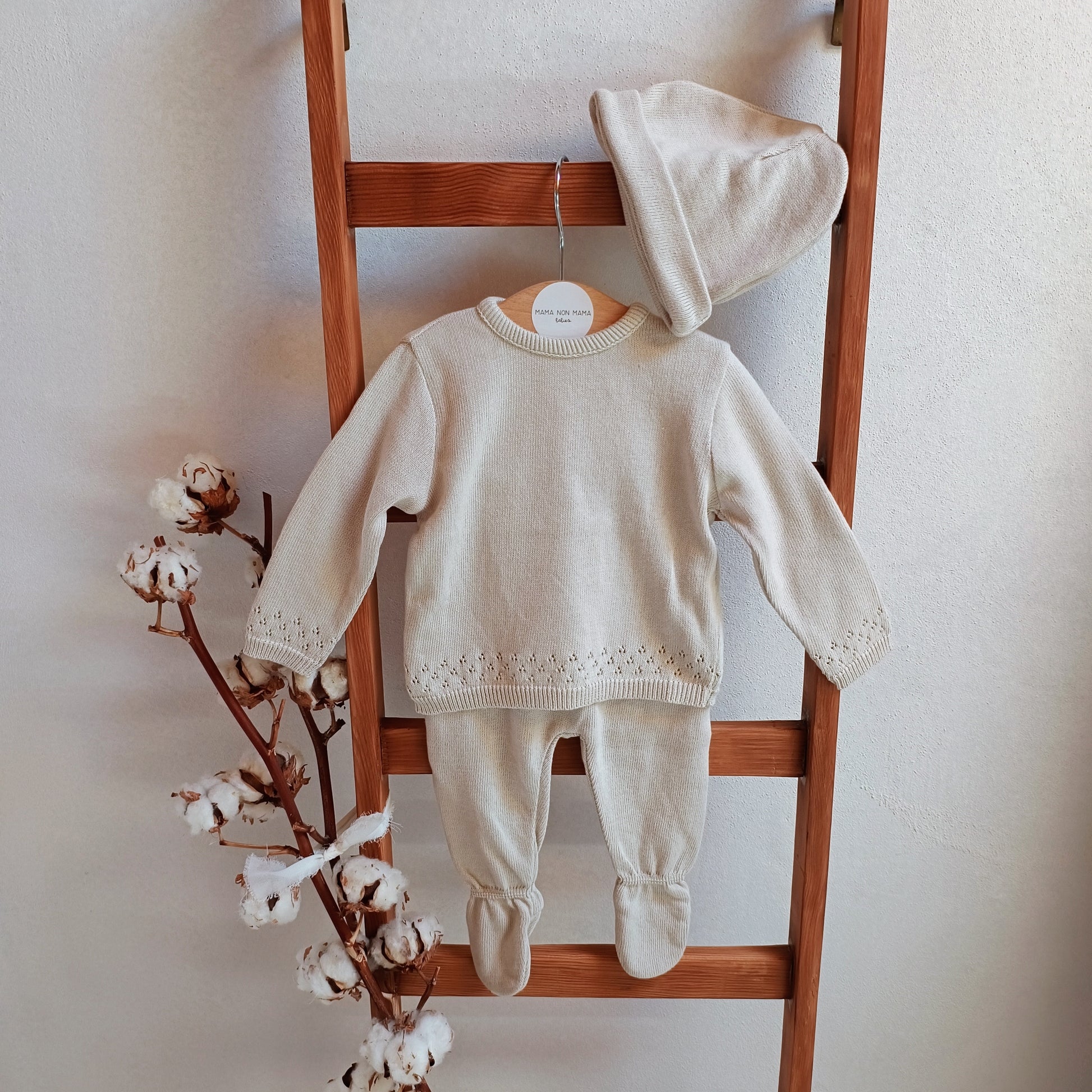 Completo 3 pezzi in cotone 100% leggerissimo ideale per le stagioni calde taglia unica 0-3 mesi colori sabbia/beige, rosa e azzurro