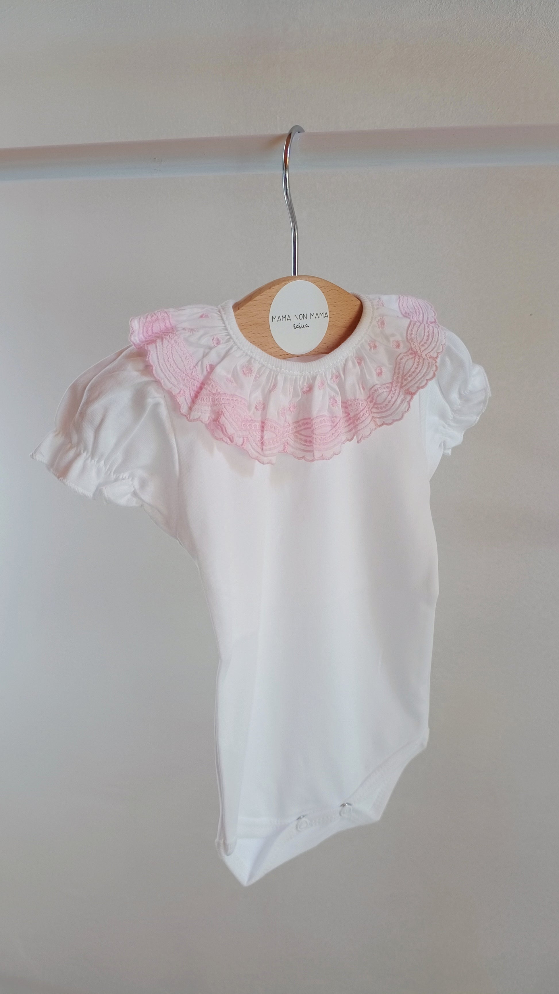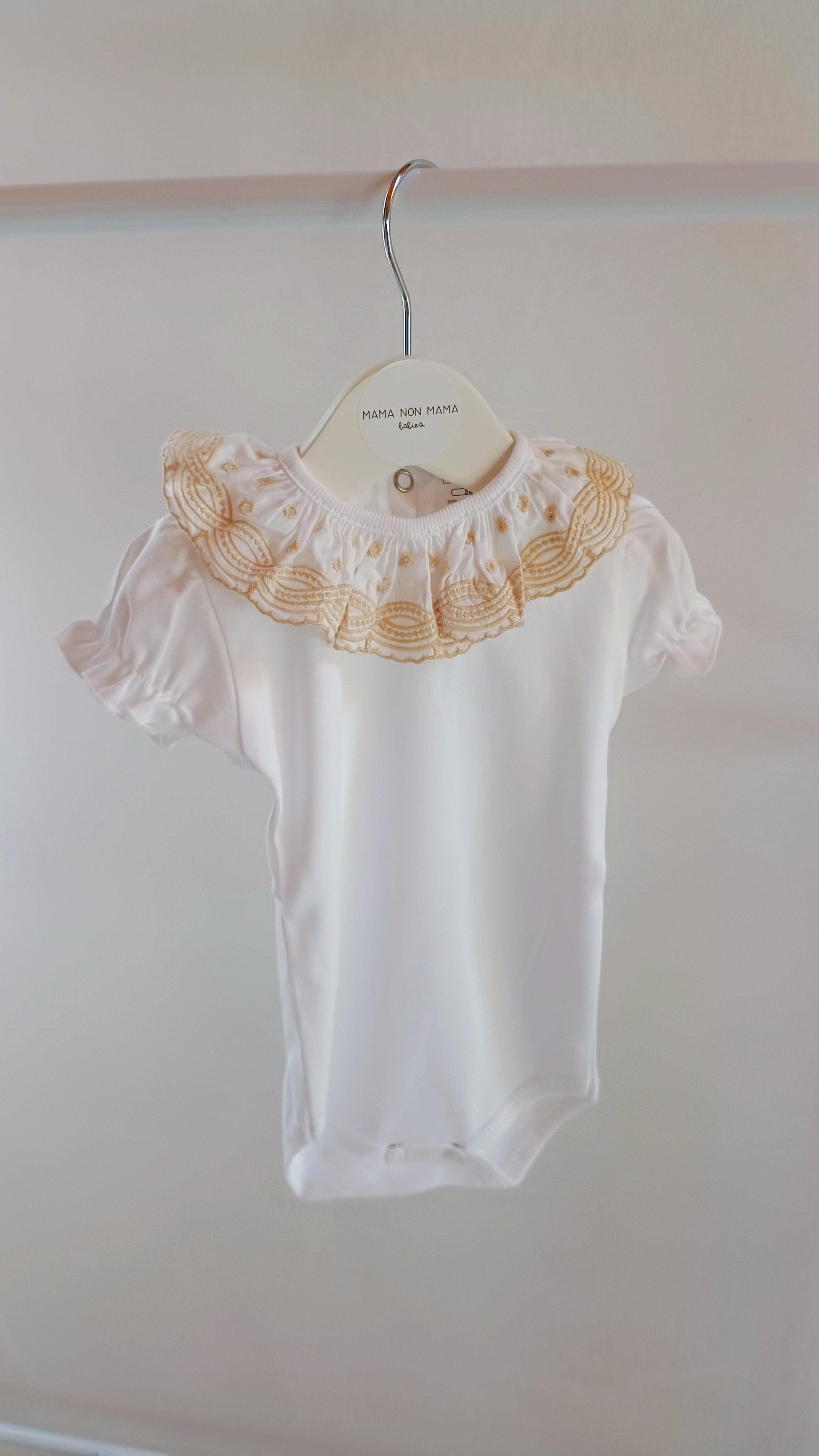 Questo body è un capo classico per i neonati arricchito da uno splendido colletto che lo rende chic e pratico nello stesso tempo.