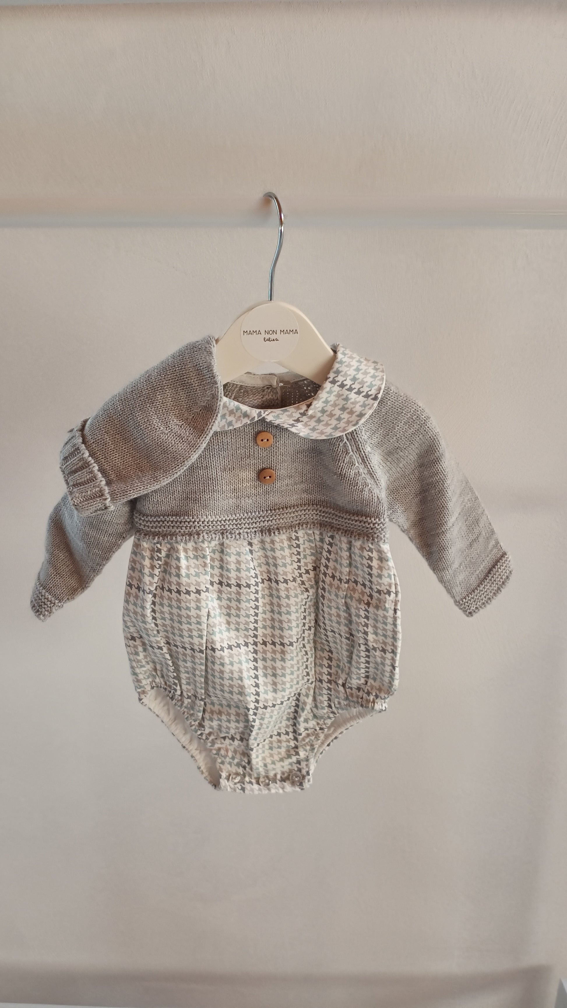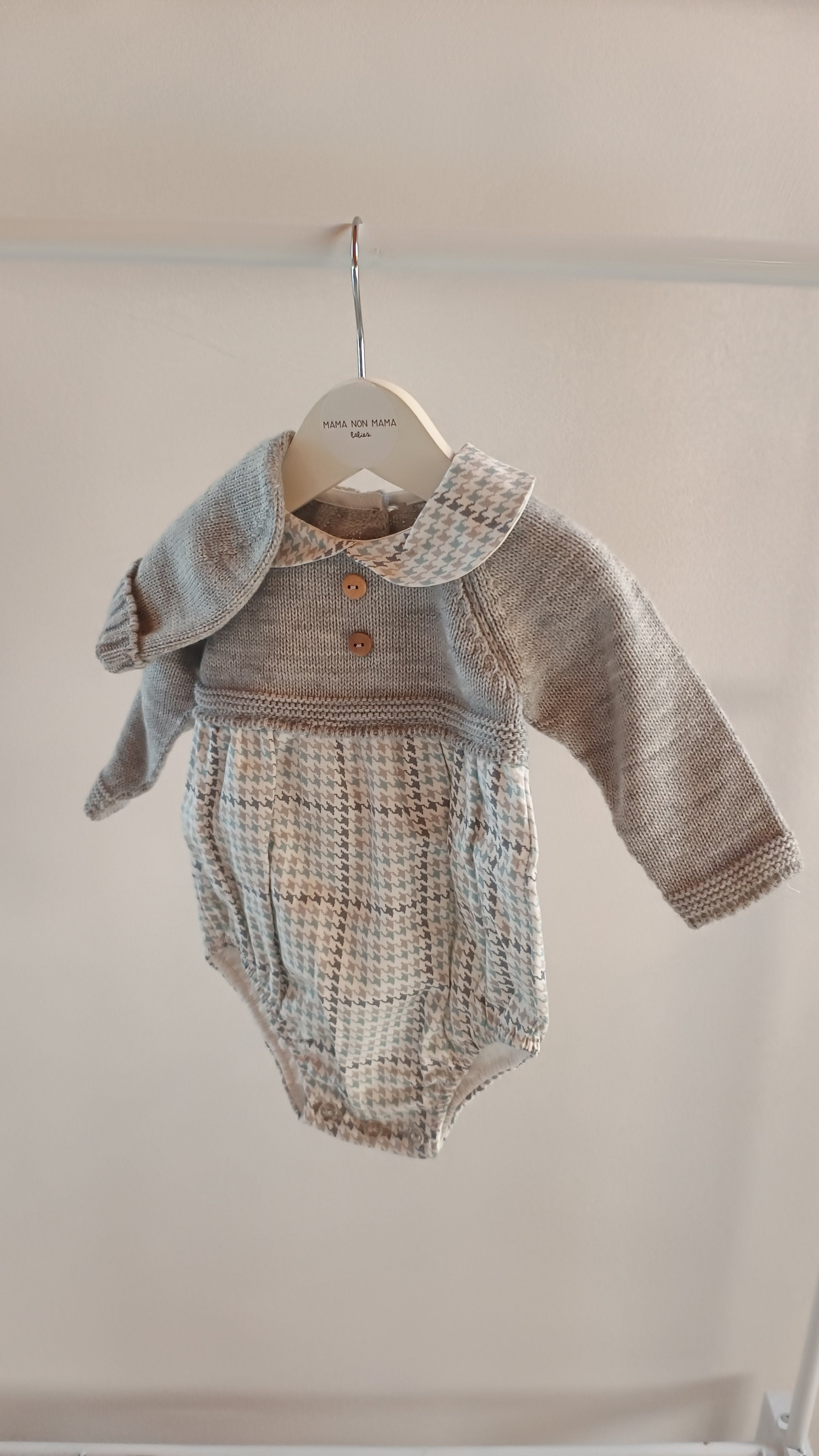 A completare il tutto, una deliziosa cuffietta coordinata che proteggerà la testolina del tuo piccolo dal freddo, aggiungendo un tocco finale di dolcezza al look.