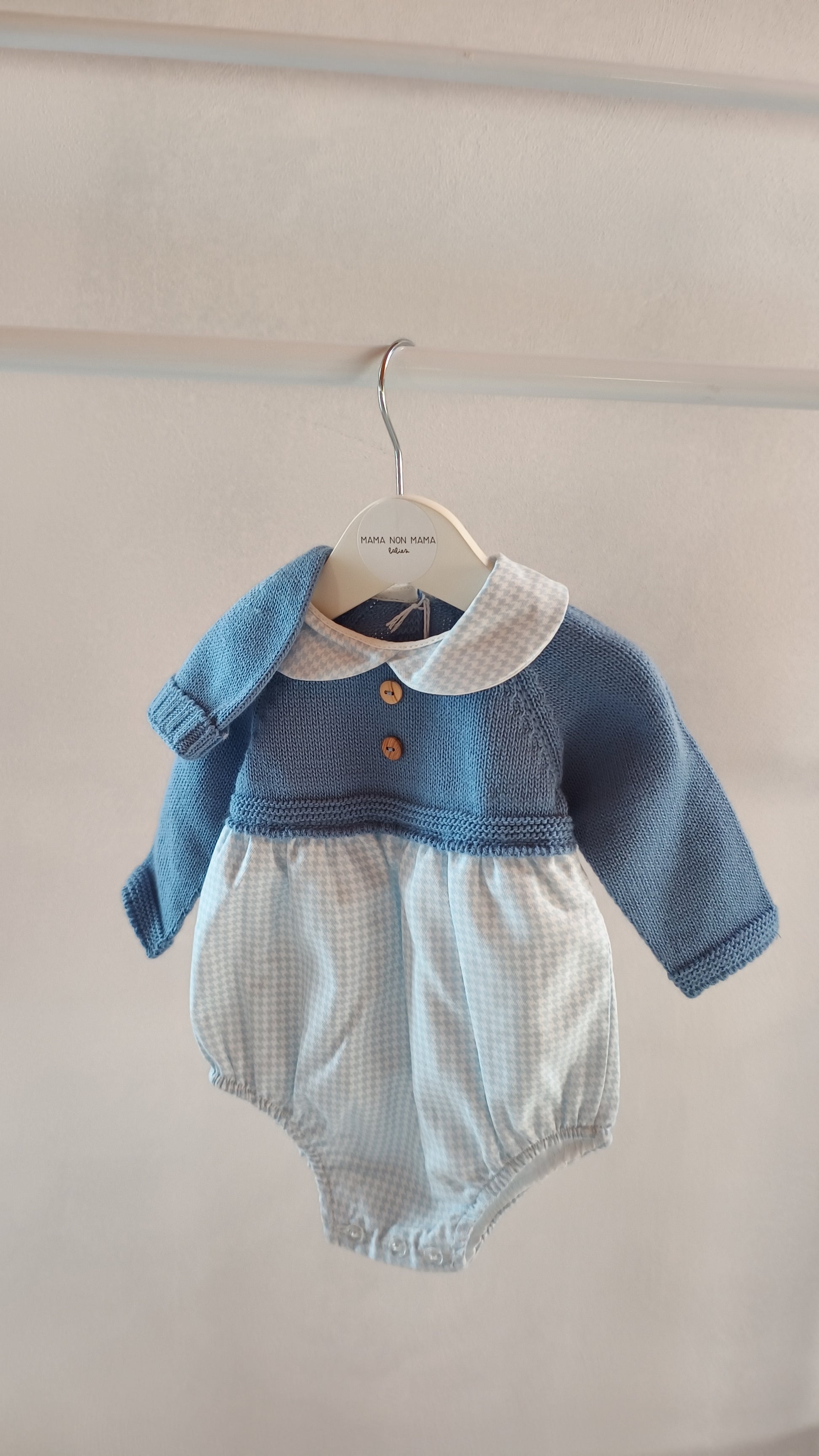 La parte superiore, che simula un morbido maglioncino, è perfetta per tenere al caldo il tuo piccolo. La parte inferiore, invece, è realizzata in cotone 100%, garantendo la massima delicatezza sulla pelle del neonato e una traspirabilità ottimale.