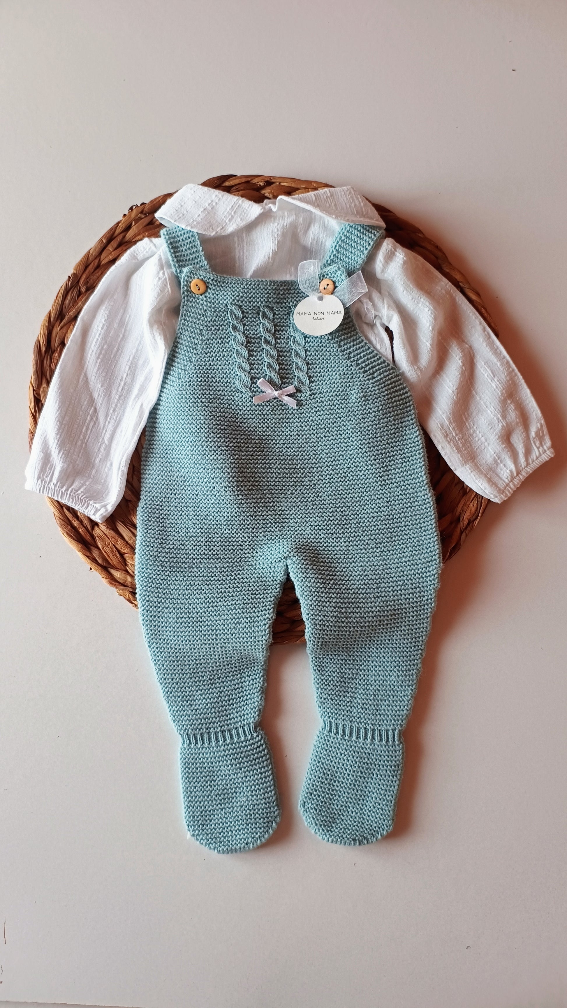 - "Eleganza e comfort in un unico set. Questo completo, composto da una salopette in misto lana morbido e una camicia in mussola di cotone , è la soluzione perfetta per ogni occasione. Il look è adorabile e chic, ideale per eventi speciali o semplicemente per una passeggiata in famiglia. Vestire il tuo bambino non è mai stato così semplice e stiloso!"