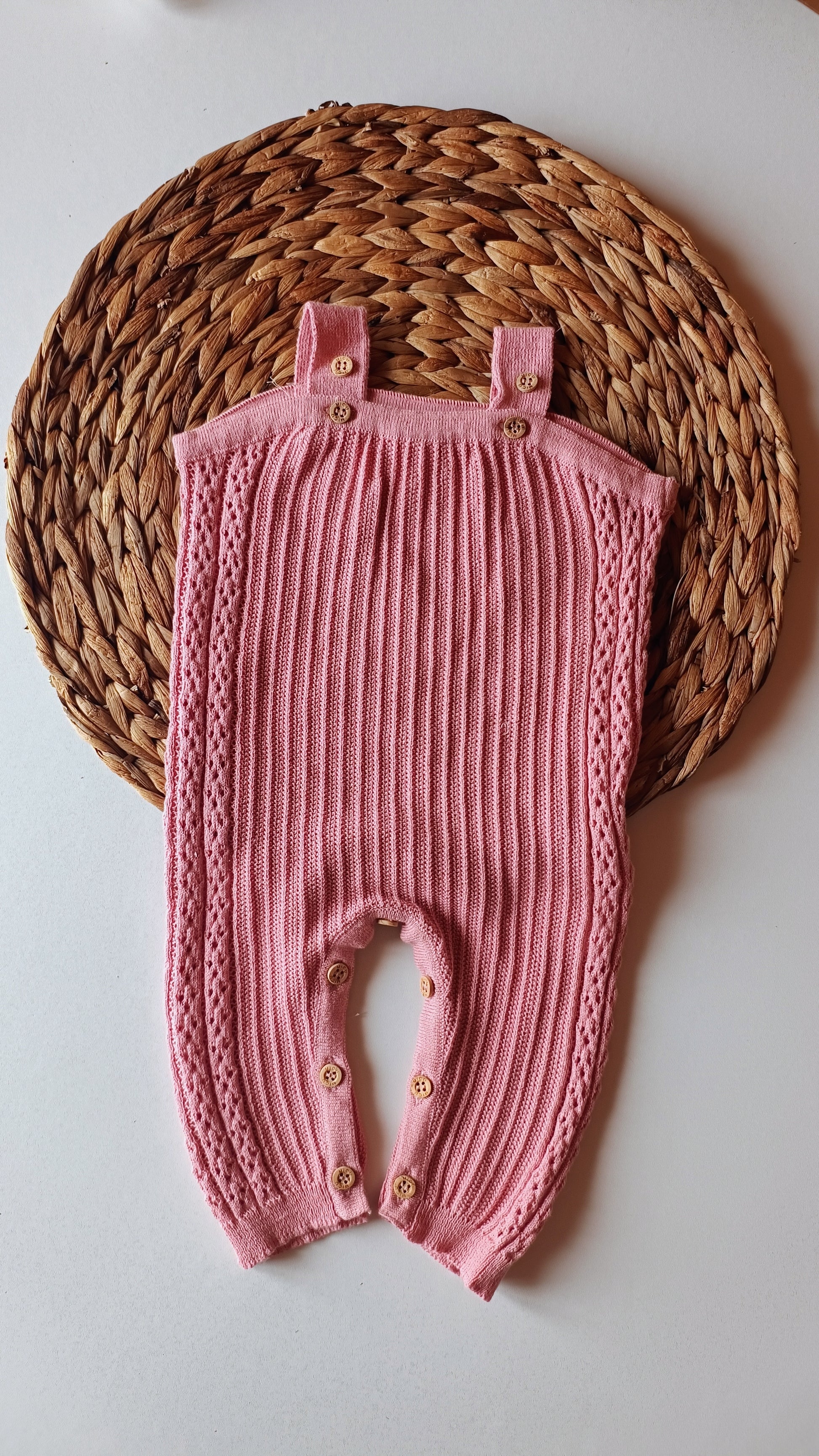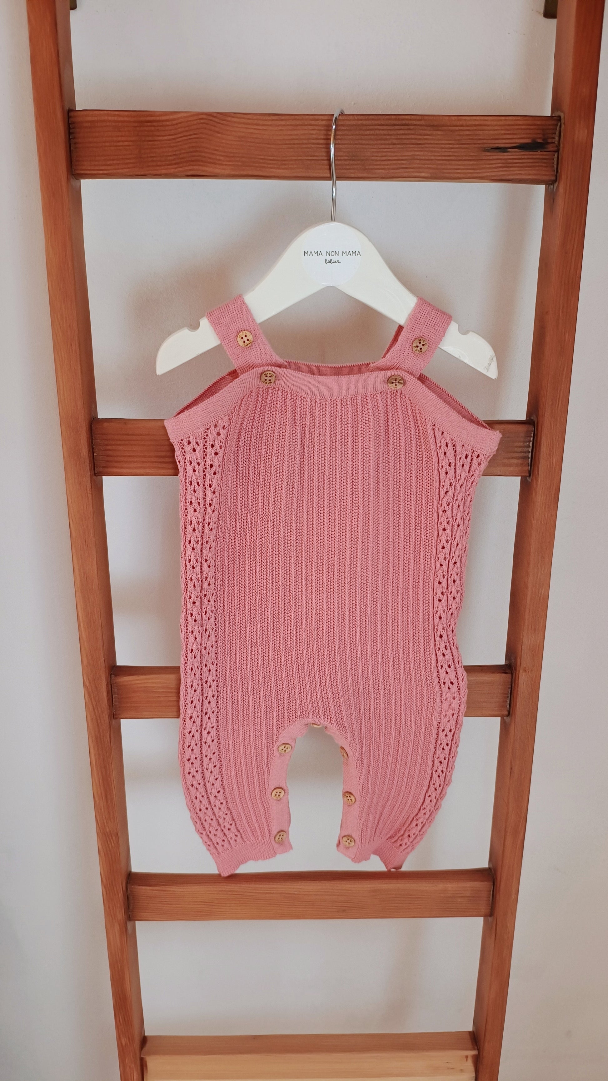 Nuova salopette in cotone biologico certificato per neonato, nel classico e intramontabile colore rosa acceso meraviglioso.