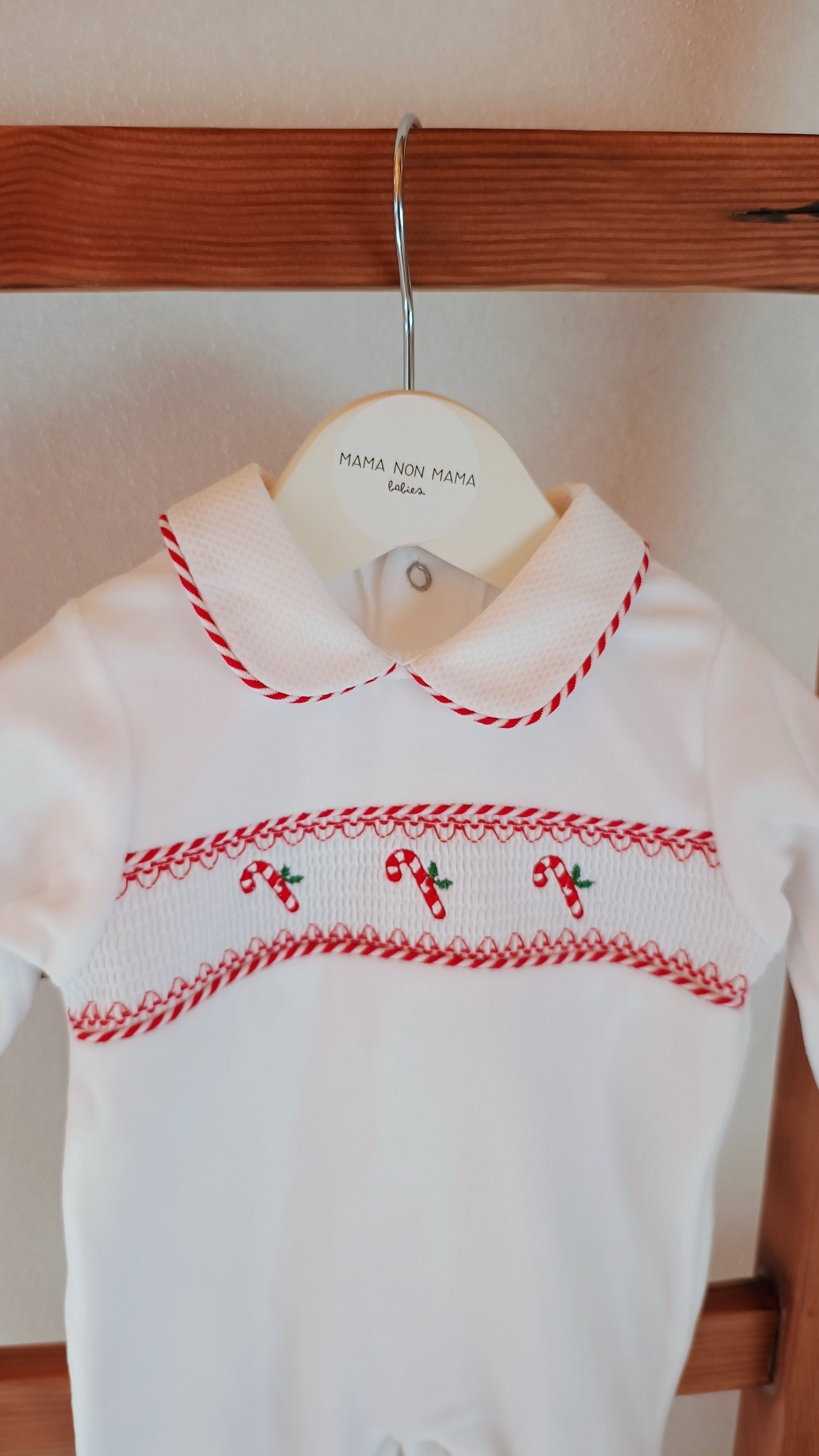 - Dettagli Che Fanno la Differenza: Il colletto Peter Pan e i delicati ricami a nido d'ape in rosso e bianco sul petto aggiungono un tocco di classe e tradizione.