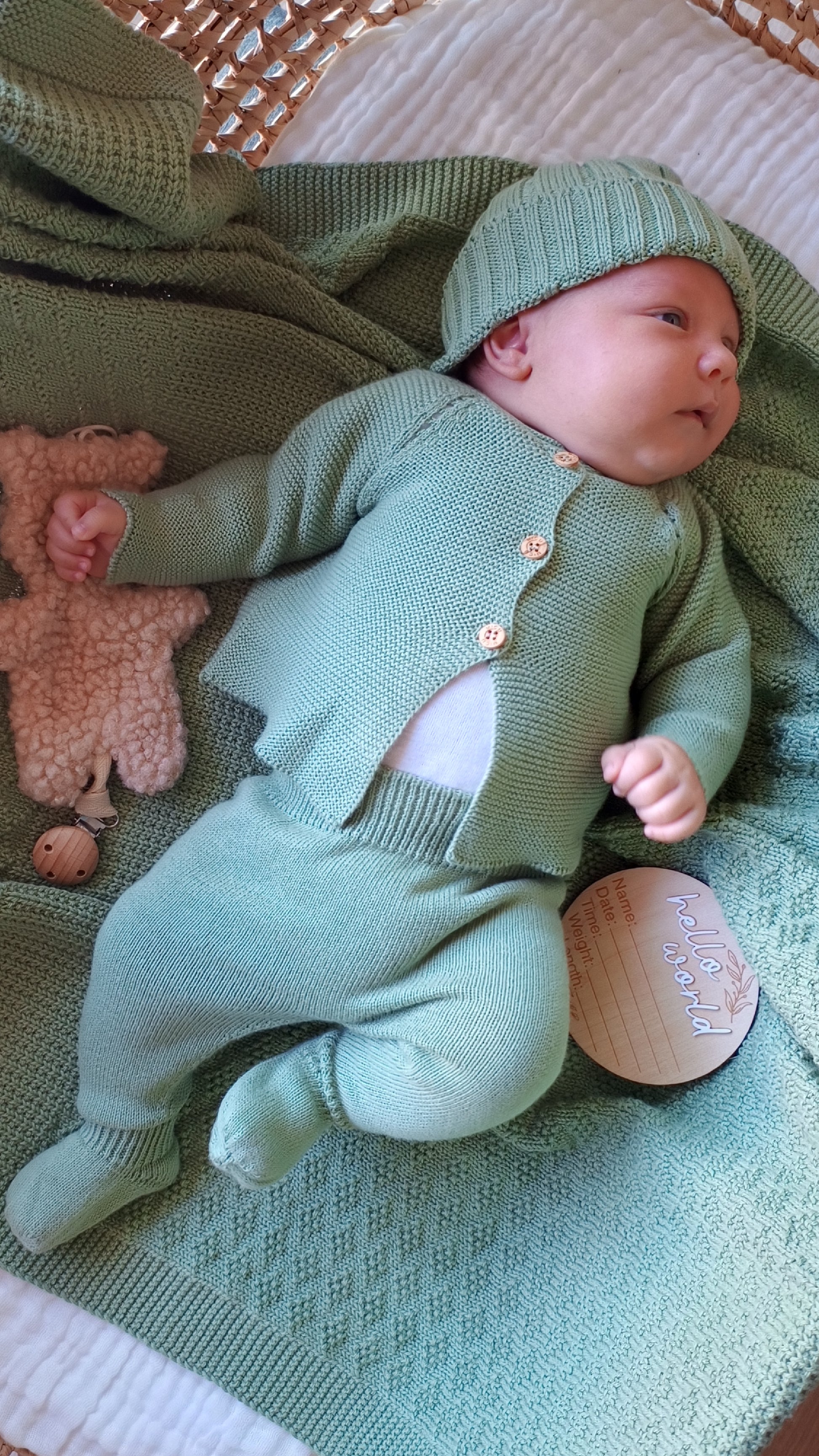 - ⛅️ TRASPIRANTE E COMODO: che il bambino nasca in estate, in inverno o durante il resto dell'anno, questo primo strato in maglia è traspirante e permette all'aria di circolare intorno al corpo del bambino. La maglieria è morbida e confortevole, essenziale per un neonato dalla pelle delicata e sensibile.